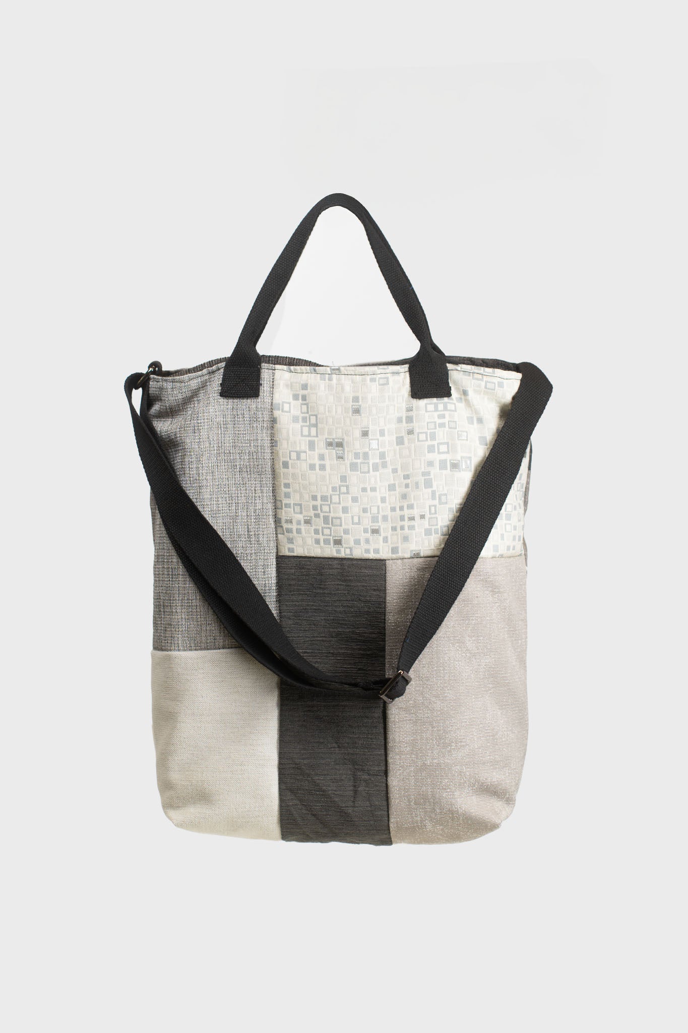 Made from upcycled textiles, each bag is one of a kind, featuring a unique mix of patterns and colours