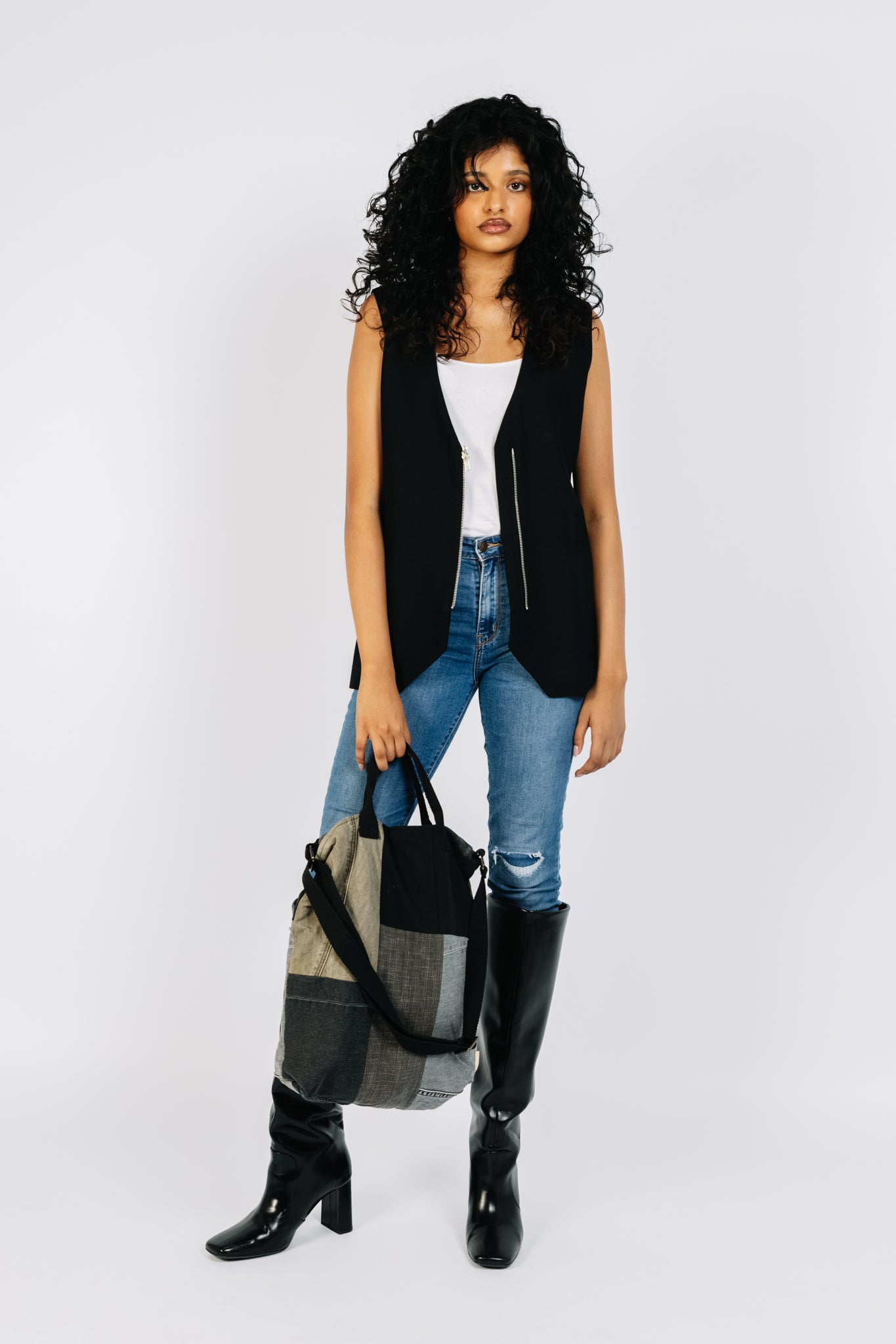 Everyday Patched Tote (Black Denim) #4