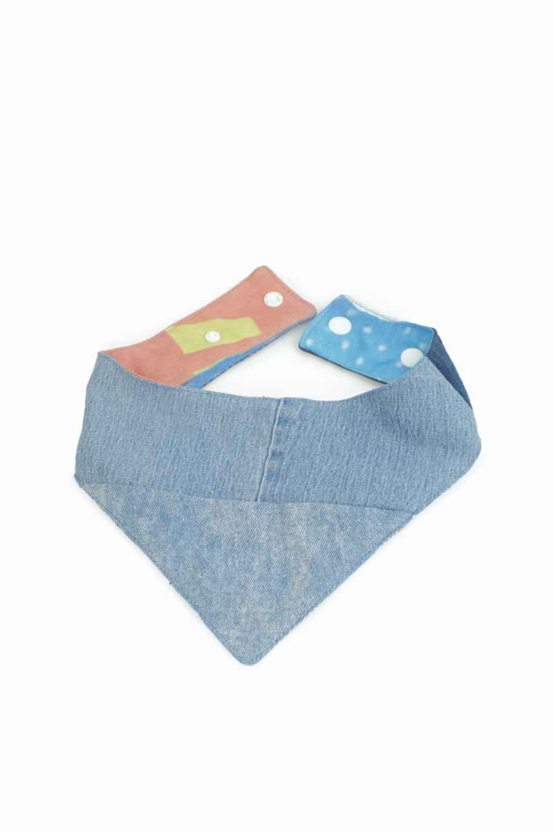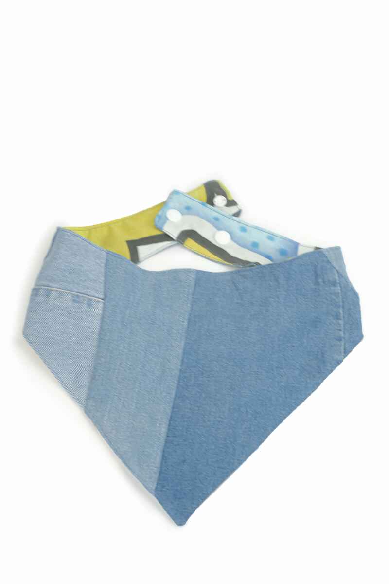 A one-of-a-kind, unique and lightweight patched bandana for your furry best friends.