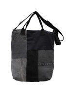 Made from upcycled denim apparel, each bag is one of a kind, featuring a unique mix of light and dark denim shades.