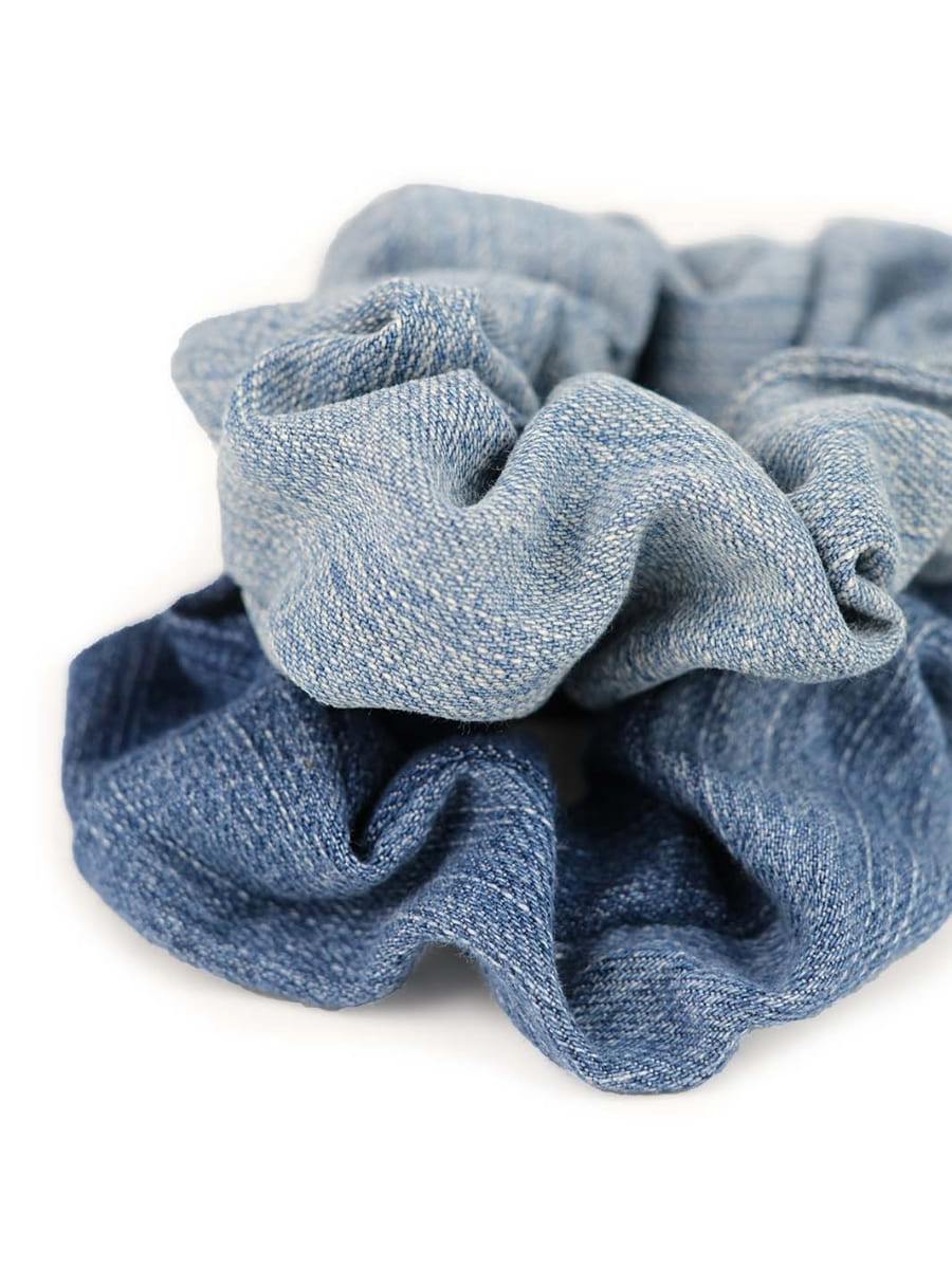One-of-a-kind designs: Each pair of scrunchies is made up of 2 tones of denim, with each pair being individually unique.