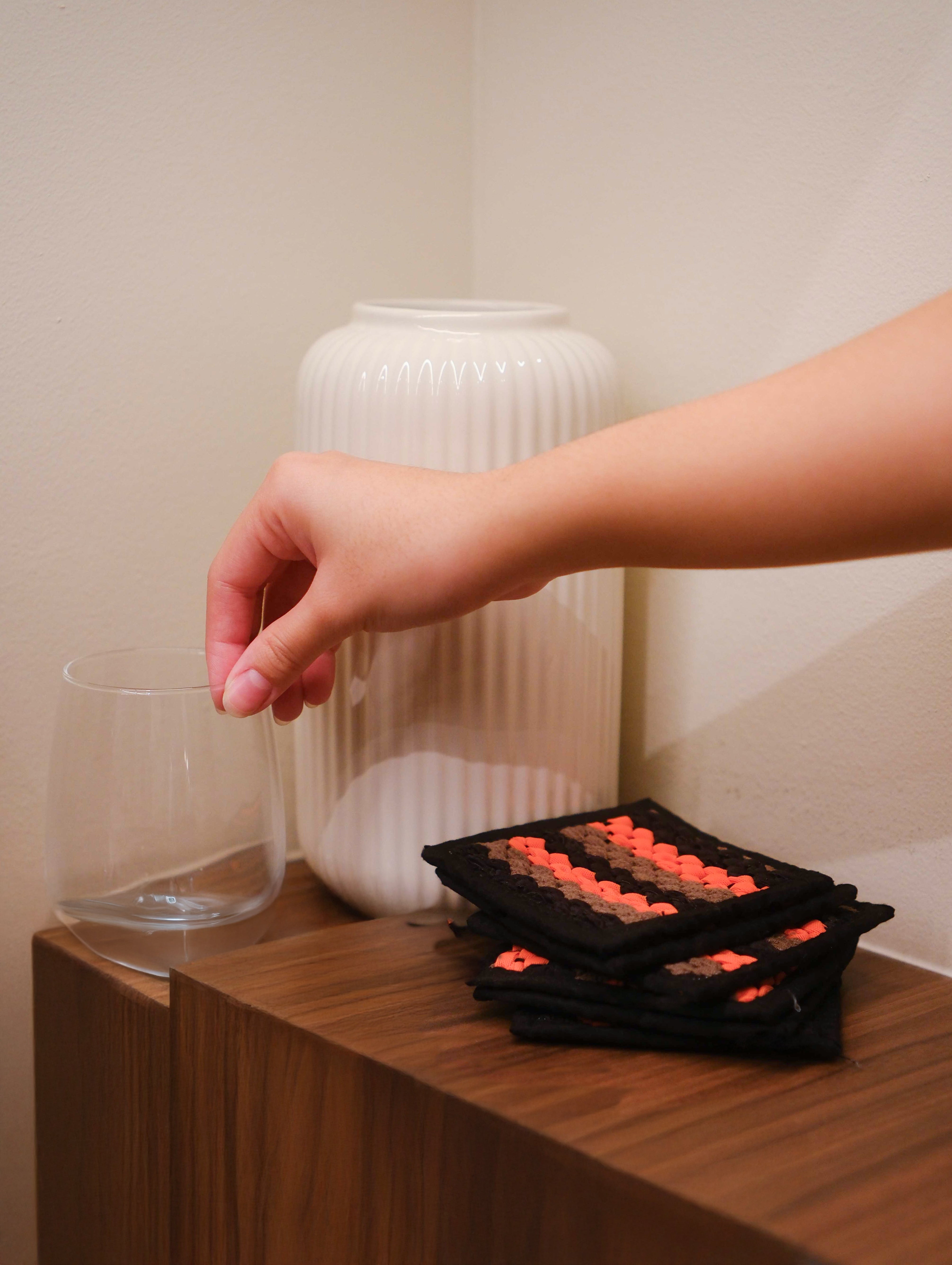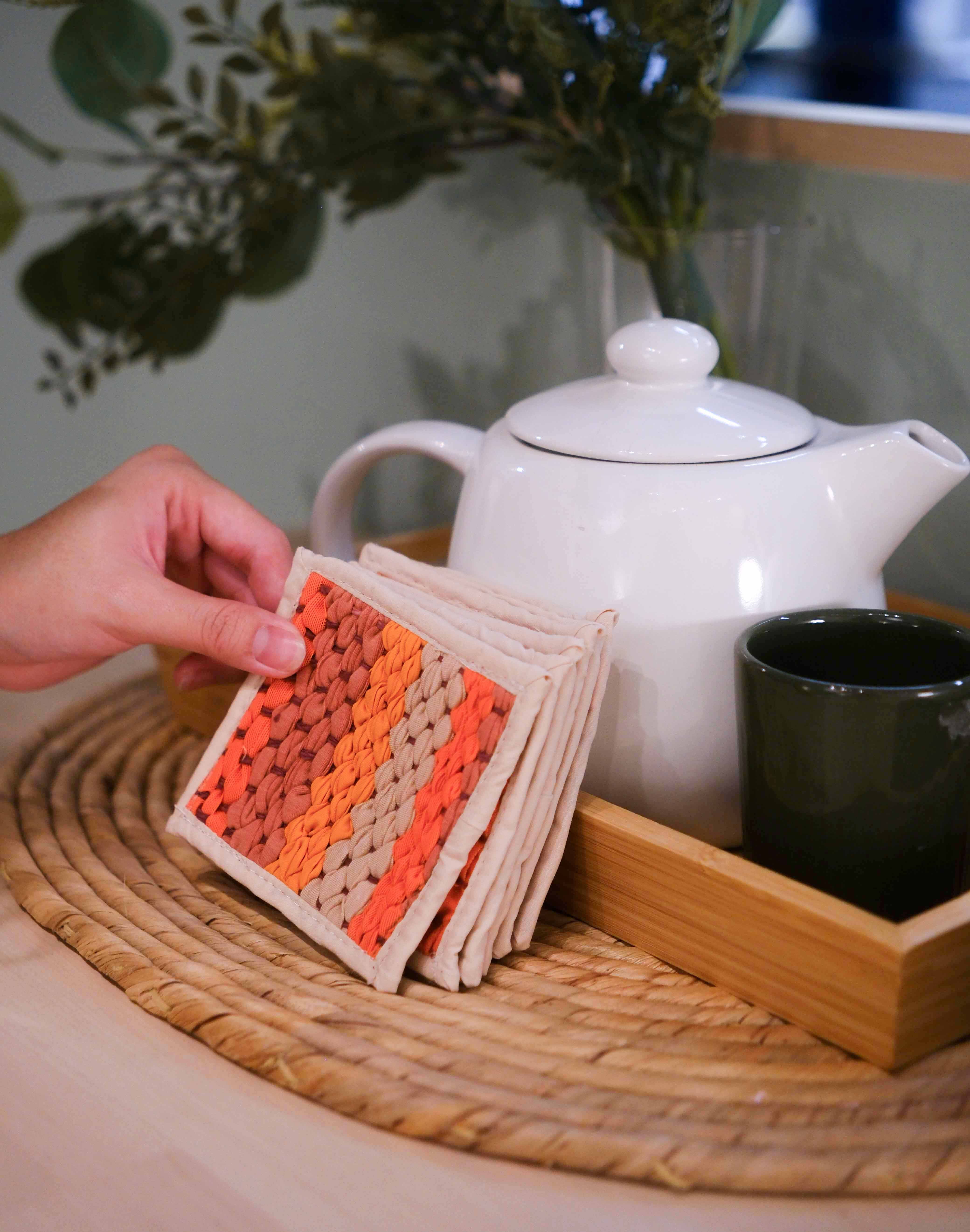 Each coaster is uniquely handwoven by talented trainees from the Autism Resource Centre (ARC) and Re-store, turning upcycled materials into sustainable home accessories.