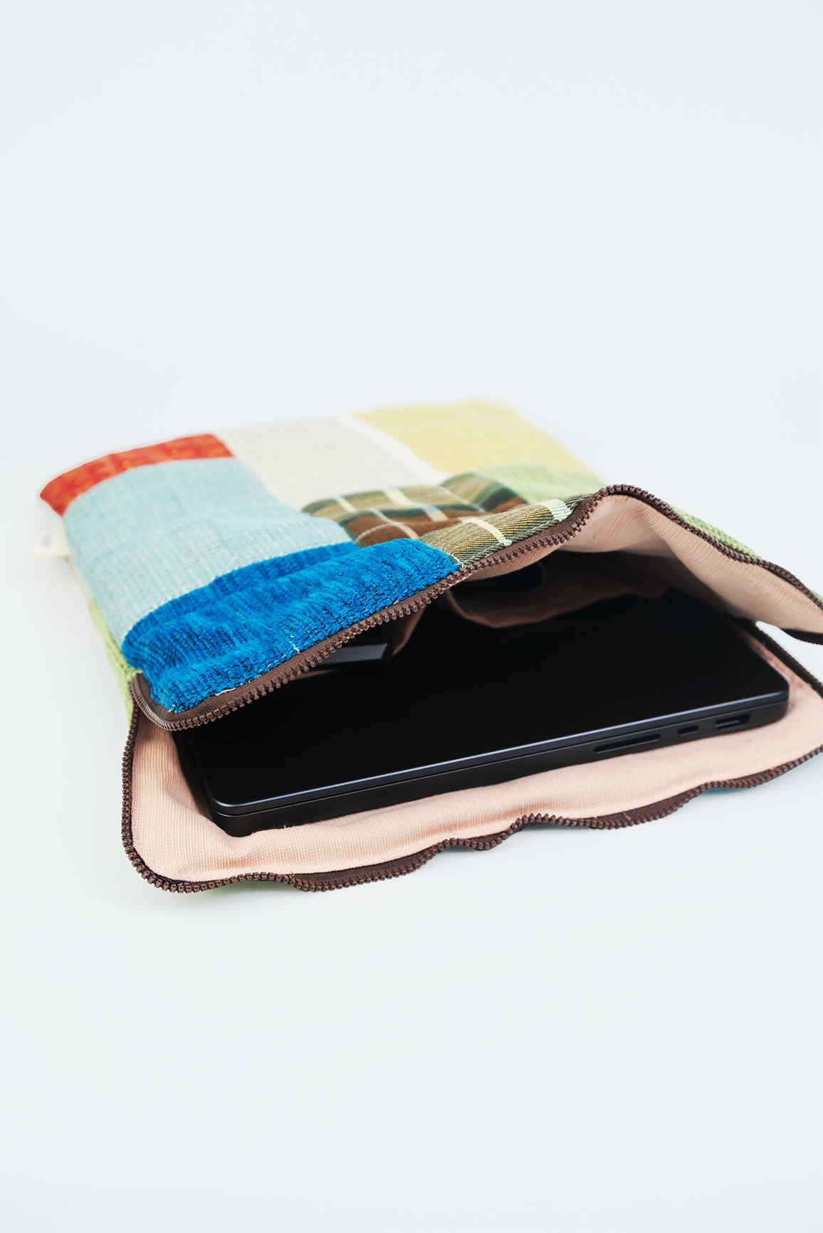You are encouraged to bring a piece of old clothing or fabric that can be incorporated and preserved into your laptop sleeve!